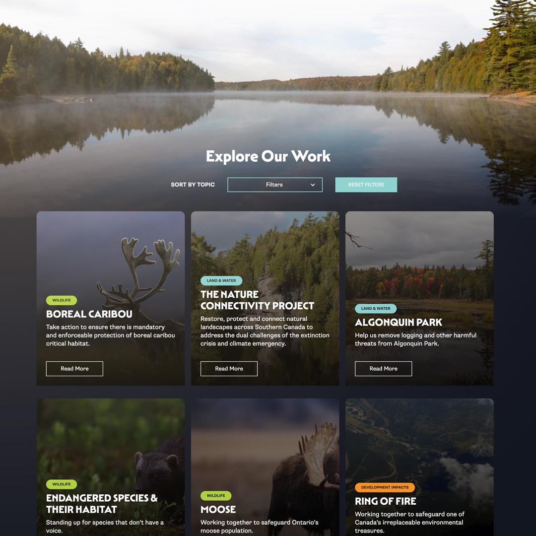 Wildlands, a leading environmental non-profit dedicated to protecting Canada’s wild spaces, engaged us to create a refreshed brand identity that would define the organization’s next chapter. The new identity needed to anchor a redesigned website and guide all future communications, providing a clear and inspiring visual foundation for the organization’s advocacy and outreach efforts.